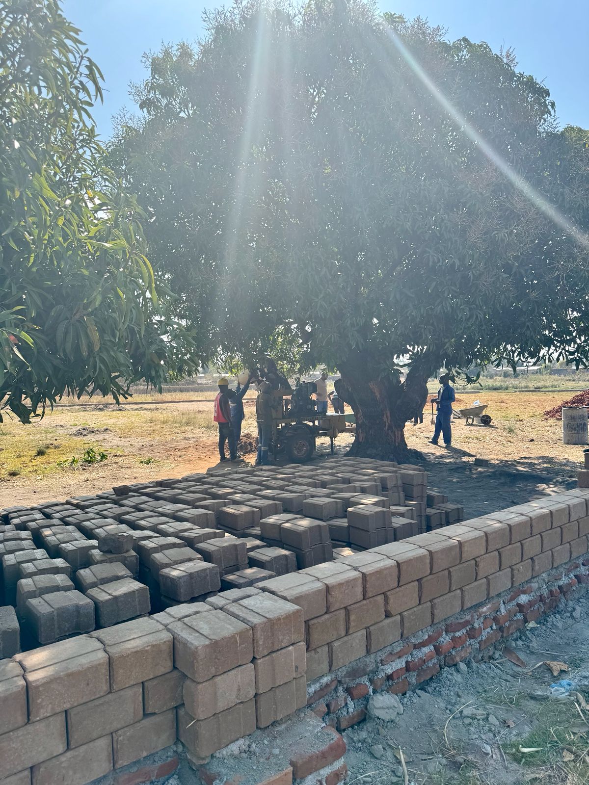 We overcame challenges with the interlocking brick machine and production is running smoothly now.